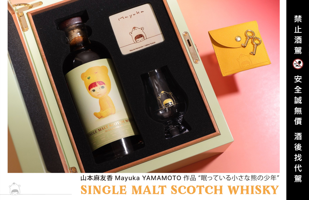 這瓶威士忌是與日本藝術家山本麻友香的聯名合作作品,選用了來自艾雷島的Bunnahabhain蒸餾廠44年原酒,台灣限量200套。